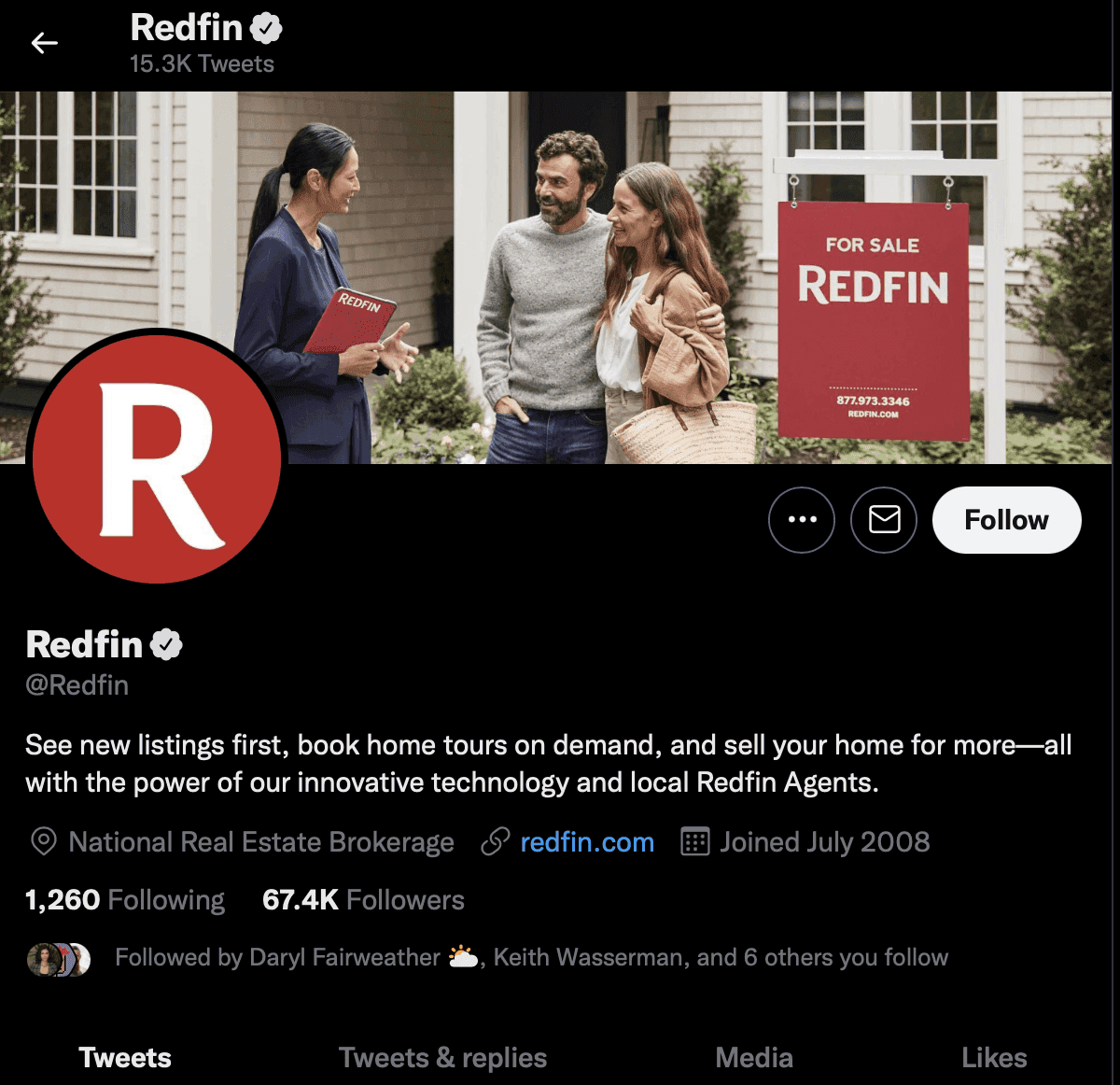 Redfin is a giant within the real estate industry, and for a good reason. These guys have one of the most reputable brands when it comes to market data and thought leadership content. Their Twitter account and other social media channels are filled to the brim with data, insights, opinions, and possible market trends. Redfin truly is on the ball when it comes to real estate.