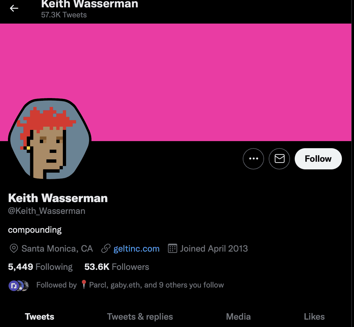 Keith Wasserman is a Twitter real estate influencer that has grown his following over the past few years from just being his authentic self. He's not just interested in real estate but cryptocurrency too. Perfect for our Parcl family! Keith has a plethora of experience and has been involved in some highly profitable acquisitions of several commercial, industrial and residential properties totaling over $1.9 billion in assets. It would be safe to say that this guy knows what he's talking about. He also shows a more comical side to real estate investing and would be 100% worth following.