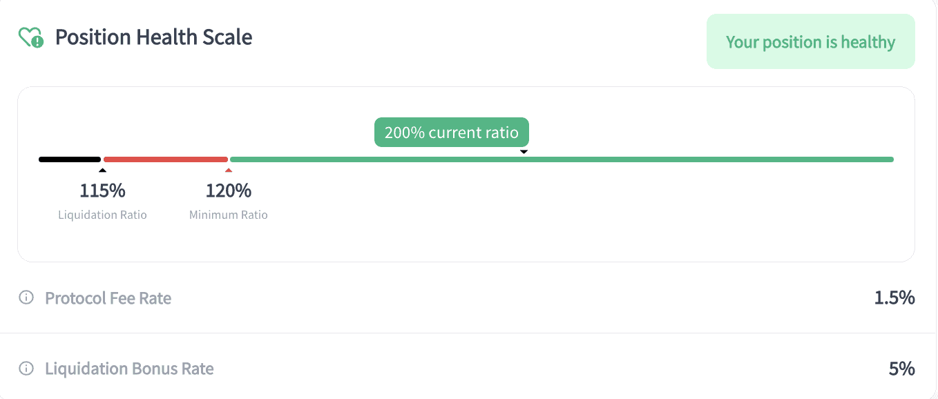 You can quickly see the overall ‘health’ of your loan, also called a vault position, and easily manage your vault position to meet your risk profile.