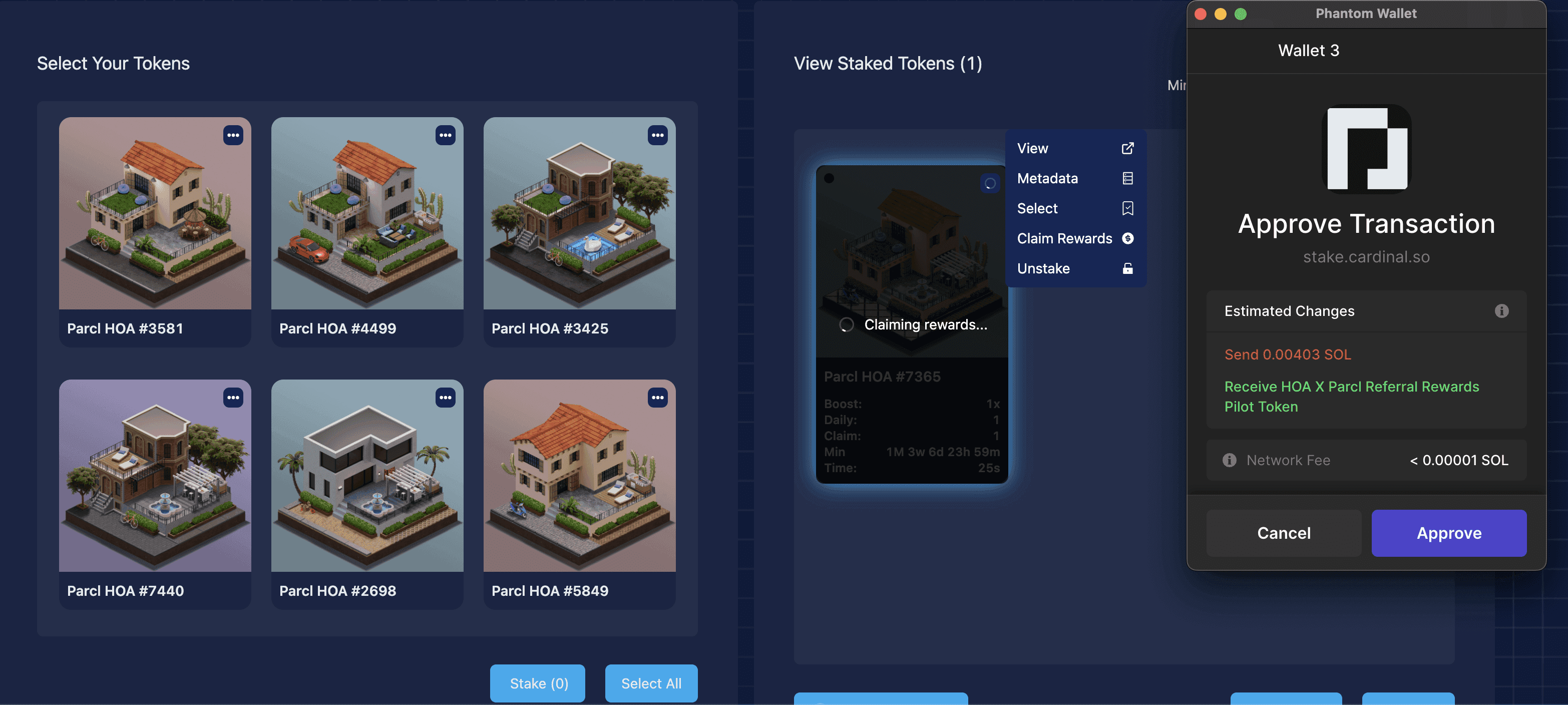 Today is an exciting day as it marks the launch of Phase 1 of the Parcl Protocol referral program, where all HOA holders are eligible to participate by staking their HOAs and claiming a new ‘Referral Rewards Pilot’ SFT. This program will take community membership to the next level, and help educate many more new users on how they can begin building their global real estate portfolios.