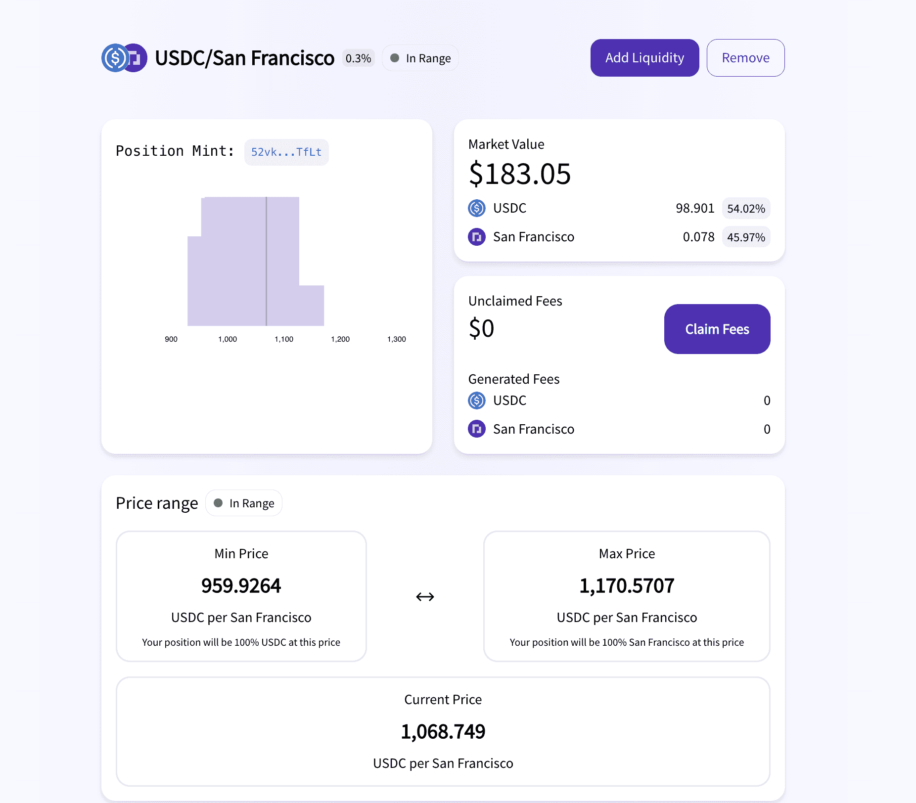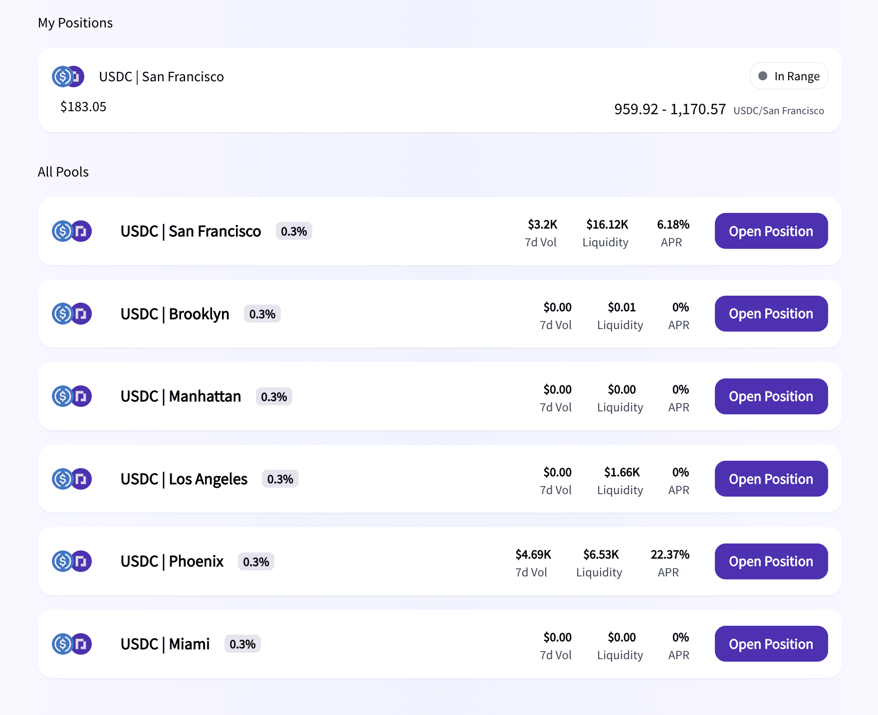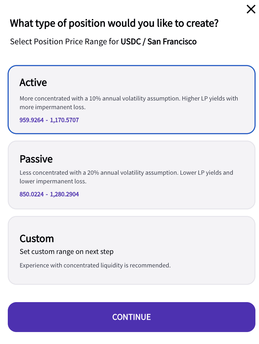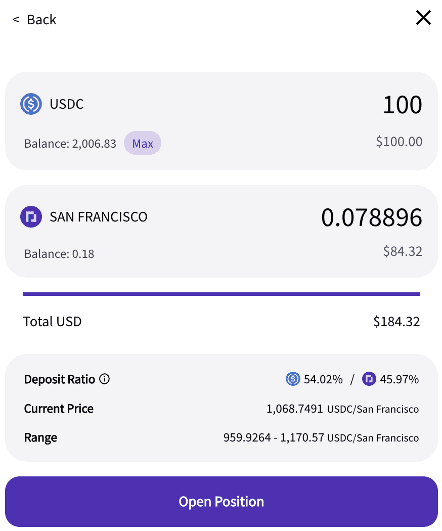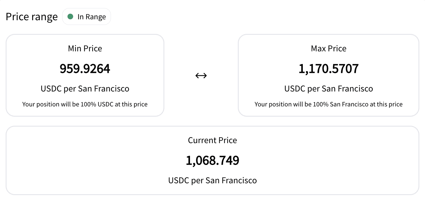 For example, if you have SF Parcl tokens and USDC, and believe that USDC trades will occur between $500 and $2,000 per sqft, then you choose that range and earn yield based on the accuracy of your assumptions.