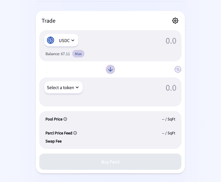 Below, “select a token” you’ll see the Pool price, Parcl Price Feed, and Swap feed.