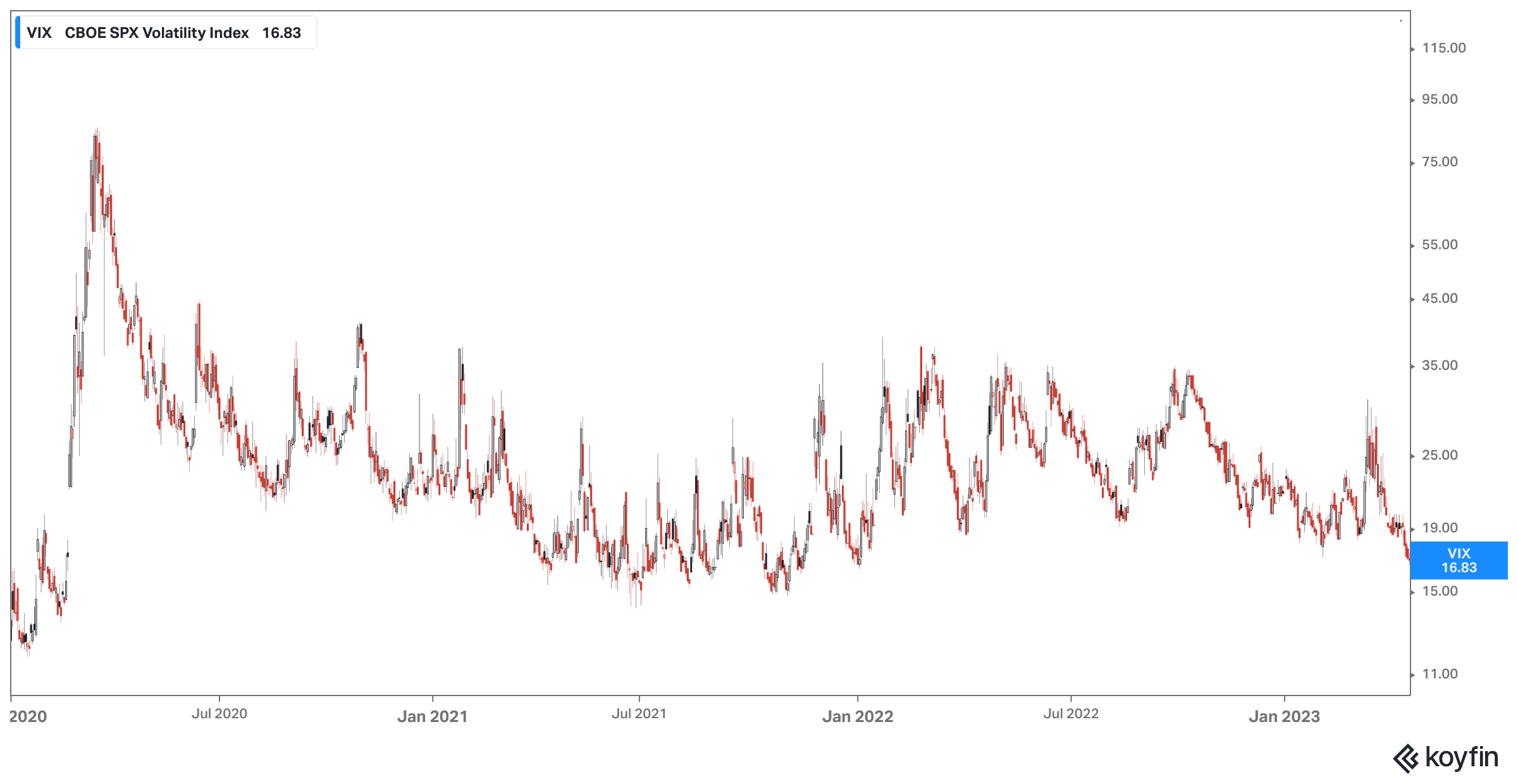 Volatility across markets has generally receded following a recent spike around bank solvency concerns.