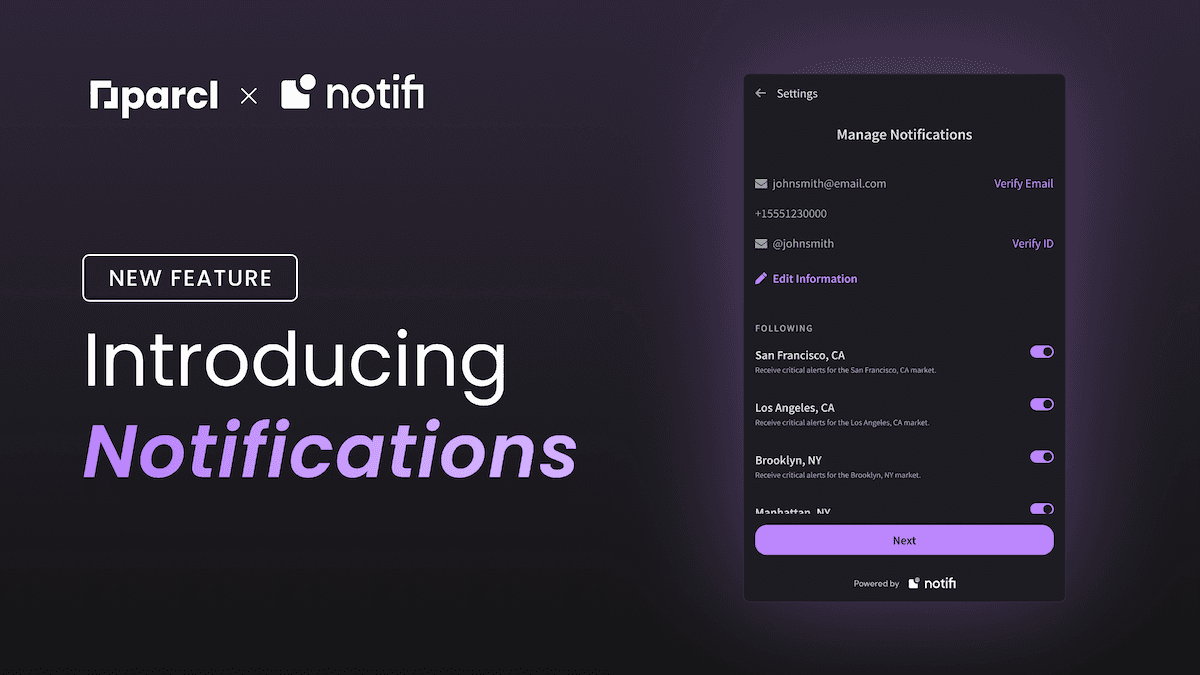 Parcl integrated the with Notifi to bring notifications directly into the dapp. Traders can stay up-to-date on market alerts + new features, you can now opt-in to notifications on Parcl.