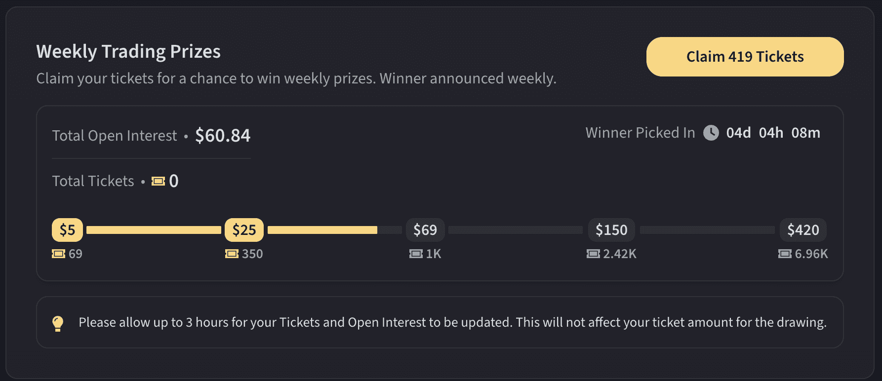 Claim your tickets to the raffle by the $ of open interest you have in the contest
